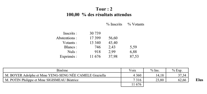 Le binôme Philippe Potin - Béatrice Sigismeau l'emporte sur le canton 21 à Saint-Pierre avec 62,66% des voix. Derrière eux, le binôme Adolphe Boyer et Graziella Yeng-Seng née Camele fait 37,34% des voix. (Photo d'illustration rb/www.ipreunion.com)