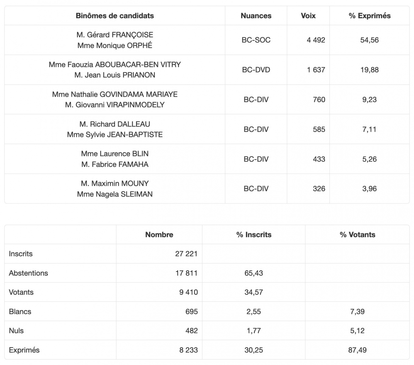 Le binôme Gérard Françoise et Monique Orphé montre une large avance sur le canton numéro 9 (Saint-Denis 1) avec 54,56% des voix. En seconde position arrive le binôme Faouzia Aboubacar-Ben Vitry et Jean-Louis Prianon. Environ 30% des électeurs se sont exprimés sur ce canton (Photo d'illustration rb/www.ipreunion.com)