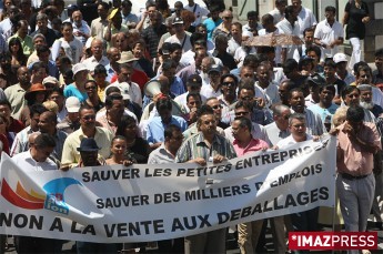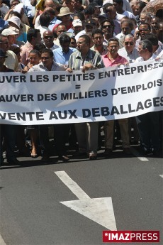 Environ 200 "petits" commerçants ont manifesté ce lundi 27 octobre 2008 à Saint-Denis. À l'appel de la FEDACTION (Fédération Départementale des Associations d'Artisans, de Commerçants et de Travailleurs Indépendants organisés de la Réunion) ils protestent contre les ventes au déballage organisées sur les parkings des grandes surfaces. "Ces ventes sont synonymes de mort pour le petit commerce" affirme Ibrahim Patel, dirigeant de la FEDACTION. Une délégation a été reçue en préfecture. "La directrice de Cabinet du préfet nous a dit qu'elle allait lui transmettre le dossier. Nous attendons maintenant la réponse Le préfet" a commenté Ibrahim Patel à la fin de l'entrevue<br /> <br /> Imaz Press Réunion - http://www.ipreunion.com