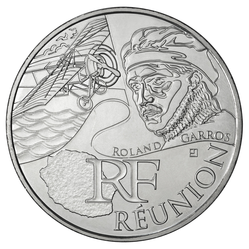 Natif de l'île, le lieutenant pilote Roland Garros a effectué la toute première traversée aérienne de la Méditerranée de 1913. Aux commandes de son avion il s'est particulièrement illustré au combat lors de la première guerre mondiale.Les pièces sont disponibles dans les bureaux de poste (liste des bureaux participants à l'opération sur le site www.laposte.fr)