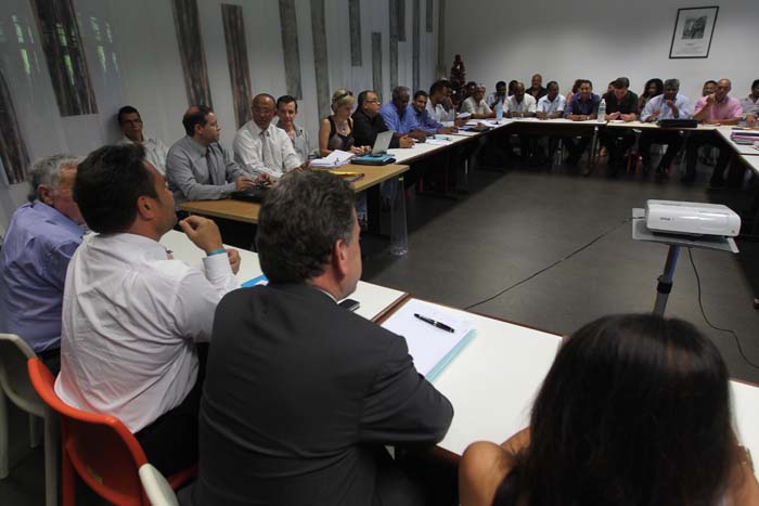 Ce lundi matin, les transporteurs, les associations de consommateurs et les autorités s'étaient réunis lors d'une table ronde dans les locaux de la DEAL (direction de l'environnement, de l'aménagement et du logement) à Saint-Denis. Table ronde qui n'aura duré en tout et pour tout que quinze minutes. En cause : l'absence de Didier Robert, président de Région, et de Nassimah Dindar, présidente du Conseil général, alors que les transporteurs avaient demandé qu'ils soient tous deux présents. "On avait fourni une liste des personnes que l'on désirait voir à cette table ronde. Didier Robert et Nassimah Dindar en faisaient partie et jouent à la politique de la chaise vide. Ils ne peuvent pas déléguer leur responsabilité à des représentants. On se sent méprisé aujourd'hui", s'insurgeait alors Jean-Bernard Caroupaye, président de la FNTR (fédération nationale des transports routiers).