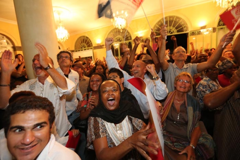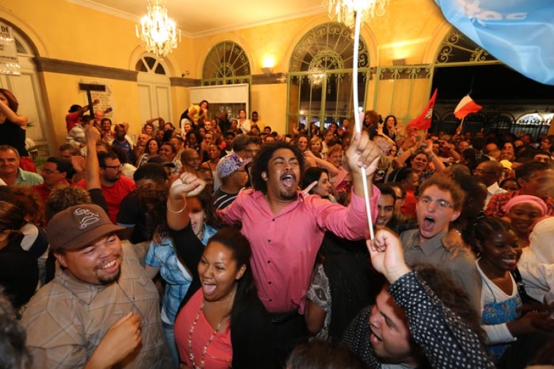 "Hollande président", "on a gagné". Les cris de joie ont fusé sous le porche de l'ancien Hôtel de ville de Saint-Denis ce dimanche 6 mai 2012. Il était 20 heures, sur un écran géant installé dans le hall, le visage de François Hollande venait de s'afficher avec en incrustation le chiffre qui a déclenché l'explosion de joie : 51,90%. Le candidat socialiste venait d'être élu président de la République