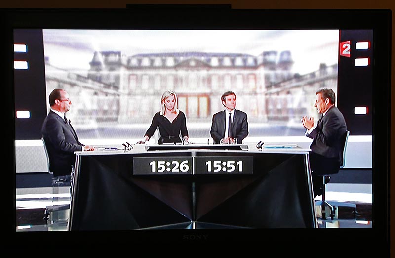 Nicolas Sarkozy et François Hollande se sont livrés, ce mercredi 2 mai 2012, un âpre combat lors du débat télévisé de l'entre-deux-tours pour tenter de rallier à leur cause les indécis, le candidat socialiste rendant coup pour coup au président sortant. Nicolas Sarkozy, qui avait survolé le débat de 2007 contre Ségolène Royal, était dans l'obligation d'attaquer pour refaire son retard face à un François Hollande donné gagnant le 6 mai. Mais à aucun moment ce dernier n'a paru en difficulté dans cette joute qui, selon les politologues, ne peut modifier le rapport de forces qu'à la marge. L'écart dans les sondages entre les deux hommes est d'au moins six points.