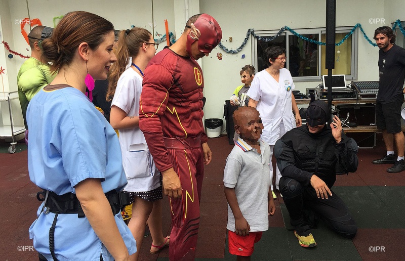 C'est un bel après-midi qu'on vécu les enfants hospitalisé du CHU, en effet plusieurs super héros et super héroines sont descendus en rappel en apportant cadeaux et sucreries. Pour la troisième année, les membres du GIPN sont venus déguisés, pour donner des sourires aux marmailles. Le pôle Femme Mère Enfant organise cet évènement avec l'association des milles pattes. Fanny Chambon, oncologue pédiatre explique l'importance de cet évènement :