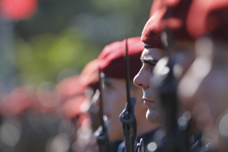 L'air marital, les différents corps d'armée défilent au pas cadencé. Certains militaires manquent un temps de cadence et se rattrapent tant bien que mal de se rattraper, mais dans l'ensemble le rythme et plutÎt bien suivi.