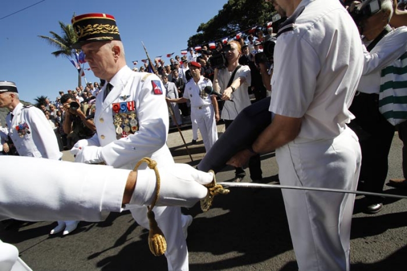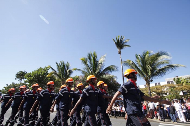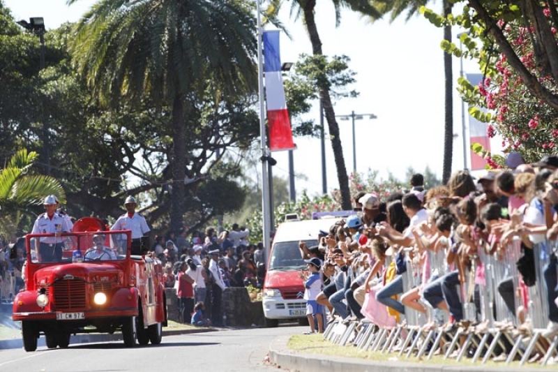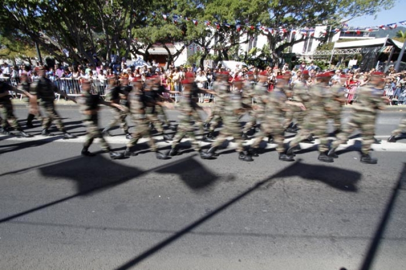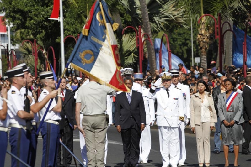 Rues pavoisĂ©es, armes et uniformes rutilants, la fĂȘte nationale a Ă©tĂ© cĂ©lĂ©brĂ©e dans les rĂšgles ce jeudi 14 juillet 2011 sur le Barachois Ă Saint-Denis. Plus de 800 militaires, policiers, pompiers, secouristes, douaniers et agents de l'office national des forĂȘts - une premiĂšre dans le genre -, ont dĂ©filĂ© sous le regard de plusieurs milliers de personnes. Le dĂ©filĂ© Ă©tait placĂ© pour la derniĂšre fois sous le commandement du gĂ©nĂ©ral Jean-Marc Nebout, commandant des forces armĂ©es de la zone Sud de l'ocĂ©an Indien (Fazsoi). Il sera remplacĂ© Ă ce poste dĂšs le 1er aoĂ»t par le gĂ©nĂ©ral Jean-François Hogard, jusqu'Ă prĂ©sent commandant des forces françaises en Afghanistan