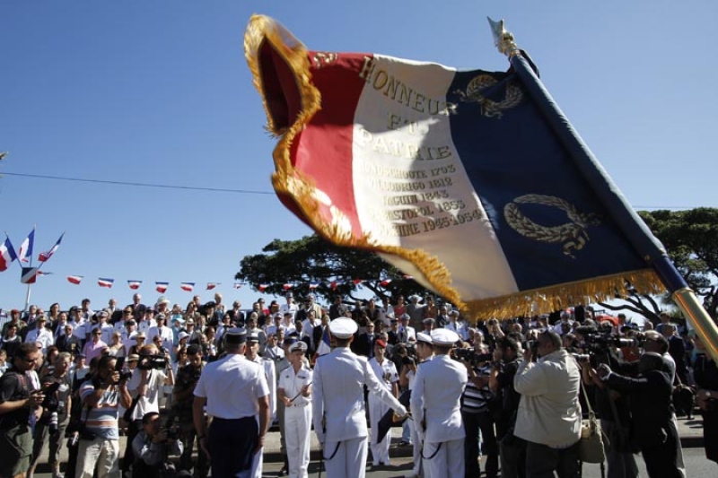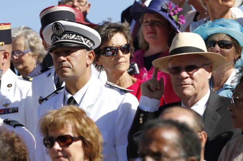 10 heures 50. Deux officiers reçoivent la légion d'honneur, un troisiÚme reçoit la médaille de la défense. Dans la tribune d'honneur, contrairement aux autres années, les chapeaux et les capelines sont rares. Sans doute en raison du vent qui s'est invité à la cérémonie.