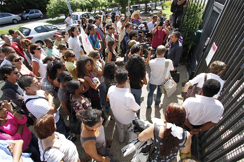 Avec le soutien de la FSU, une quarantaine de jeunes enseignants s'est réunit ce lundi devant les grilles du Rectorat dès 14 heures pour demander une réaffectation dans leur académie d'origine, la Réunion. "On sait qu'il y a des postes vacants. 117 postes sont réservés l'année prochaine pour les stagiaires de l'IUFM. Ces postes existent et on les gèle. 47 jeunes néo-titulaires sont mutés hors du département. On estime à environ 50 le nombre de postes qui seront supprimés dans les collèges et établissements secondaires, le Recteur dit qu'il y a des créations de poste dans les lycées professionnels, mais il masque la réalité," explique Marie-Hélène Dor de la FSU.Evelyne Derriennic, du même syndicat, ajoute : "On connaît les besoins de l'Académie. Ils sont réels. L'Education Nationale préfère nommer des contractuels qui coûtent moins chers." L'inquiétude est grande chez les jeunes nommés, l'une d'entre eux confie : " On se demande à quoi cela sert d'avoir un concours, si ce sont les contractuels qui ont les postes. Nous menons un combat légitime."
