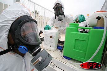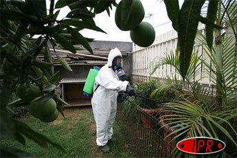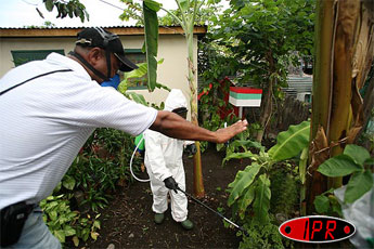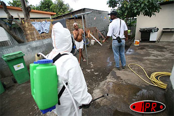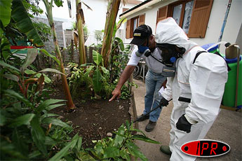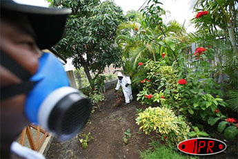 Novatrice en matière de lutte contre l'aedes albopictus, le moustique vecteur du chikungunya, la commune du Port poursuit ses pulvérisations de BTI (bacillus thuringiensis israelensis), un produit biologique mortel pour les larves de moustiques mais inoffensifs pour les autres insectes, l'homme et les animaux. Ce vendredi 17 février 2006, les brigades communales d'intervention étaient dans le quartier SATEC II
