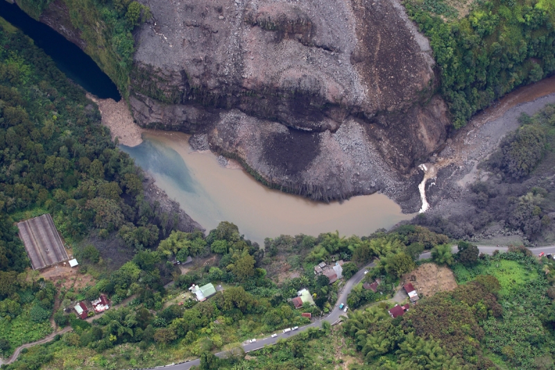 C'est aux environs d'une heure du matin ce vendredi 17 septembre 2010 qu'un éboulis a entraîné un pan de montagne dans le lit de la rivière du Mât, sur la route de Salazie. 10 000 M3 de terre, selon le bureau de recherche géologique et minier (BRGM), ont ainsi déferlé dans le lit de la rivière. "Cela a provoqué la formation d'un barrage artificiel et d'un lac artificiel. Le risque c'est qu'il y ait une rupture du barrage", confie le maire de Salazie, Stéphane Fouassin. Pour autant ce dernier se veut rassurant, "comme ce sont des matériaux nobles, on peut penser que l'eau va s'évacuer progressivement, comme lors des deux précédents éboulis". Actuellement le site est sous la surveillance de la DDE et du BRGM.