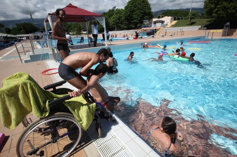 Environ 120 enfants porteurs de handicap ont goûté aux joies de l'eau mercredi 9 mars 2011 à la piscine du Chaudron. Des cours d'aquagym, de natation, de water polo, d'activité motrice ou encore des initiations à la nage ont été donnés par les éducateurs, accompagnés des maîtres nageurs et d'animateurs des associations de la piscine.