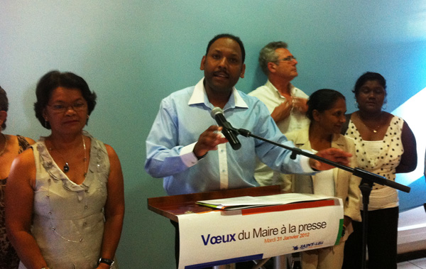 La salle du conseil municipal de la mairie de Saint-Leu a servi de cadre à une conférence de presse informelle ce mercredi 31 janvier. Le maire Thierry Robert a en e présenté ses v?ux à la presse. L'occasion pour lui de faire le point sur les grands axes de sa politique communale et sur les grands chantiers en cours. L'occasion aussi d'annoncer, encore officieusement sa candidature pour les législatives juin prochain dans la 7ème circonscription. "L'annonce officielle se fera le dimanche 11 mars au parc du 20 décembre (dans le centre-ville de Saint-Leu - ndlr) lors d'un grand rassemblement avec la population" a précisé Thierry Robert