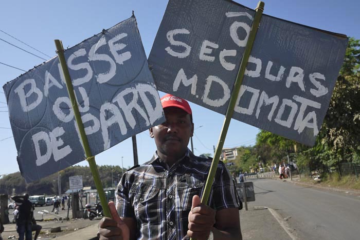 Ce lundi 10 octobre, la tension est montée d'un cran sur l'île aux parfums. Après s'être rassemblés très tôt dans la matinée sur la place du marché de Mamoudzou, principale ville de Mayotte, pour obliger les commerces à fermer, des centaines de grévistes mahorais se dirigent vers le Jumbo Score de Majicavo, village situé à l'entrée de la commune de Koungou, car le bruit a couru que certains commerces auraient ouvert leurs portes. Les manifestants continuent de lutter contre la vie chère et réclament une baisse significative des prix de dix produits alimentaires ou non.