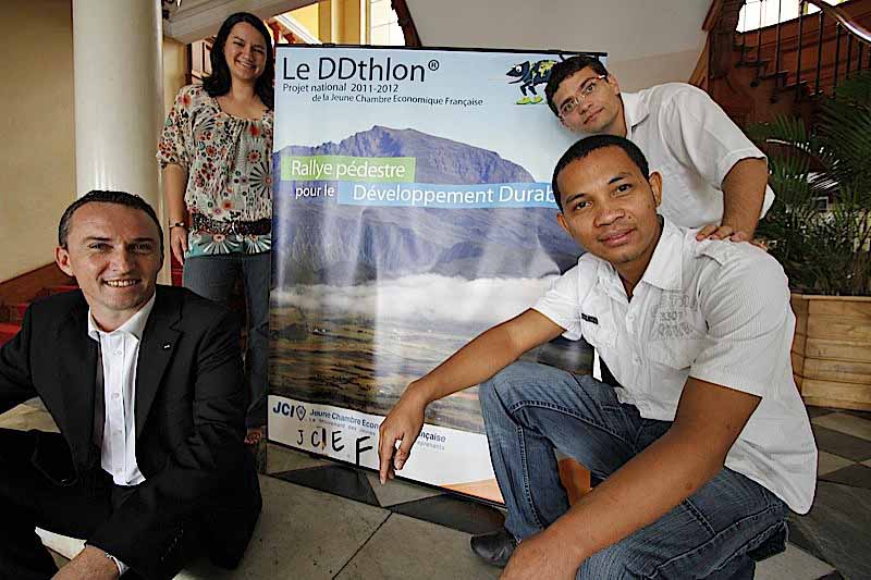 C'est en 2008 que le projet naît, à l'initiative de Sophie Elizeon, membre de la JCE de Saint-Denis et actuellement déléguée régionale aux droits des femmes. Le concept est simple. Il s'agit d'un rallye pédestre sur le thème du développement durable. Les participants réunis en équipe doivent effectuer un circuit de 4 à 5 kilomètres jalonné de 10 étapes. A chaque étape, ils doivent découvrir un lieu.Pour y parvenir, ils peuvent s'aider des indices inscrits dans le carnet de sentier qui leur est distribué au début de la course. Une fois le lieu trouvé, ils doivent répondre à quelques questions qui portent sur le développement durable. Ces questions peuvent porter sur tous les domaines, l'eau, l'air, le transport ou encore le recyclage. Ils peuvent aussi être confrontés à une épreuve comme "le tri sélectif". "Ce rallye pédestre se veut être ludique et familial tout en sensibilisant sur le développement durable", souligne Sophie Elizeon. Un concept qui séduit les Réunionnais puisque la première édition du DDthlon, en 2008, rassemble 62 personnes et la 2ème édition, en 2009, réunit 75 participants.