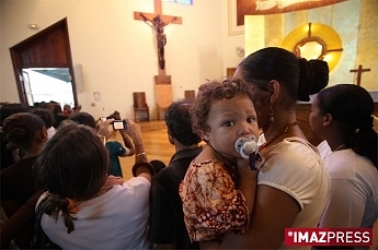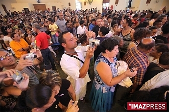 Une grande ferveur règne dans l'église du quartier de Cambuston à Saint-André ce samedi 14 mars 2009 où une esquisse du visage du Christ est apparue sur le dossier du fauteuil du prêtre. "Nous l'avons vu vendredi soir au retour du chemin de croix", a affirmé André Illamoucha, responsable de l'église. "Puis à l'ouverture ce matin à 6 heures, le visage était toujours là, depuis, des centaines de personnes sont venues", a-t-il ajouté. Pour ceux qui viennent, il s'agit d'un "miracle". Certaines personnes prient tandis que d'autres pleurent. L'Église n'a pas encore réagi à l'annonce de cette apparition.