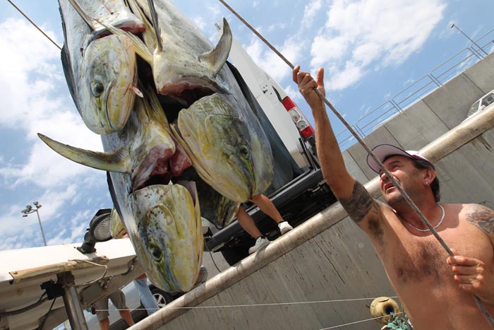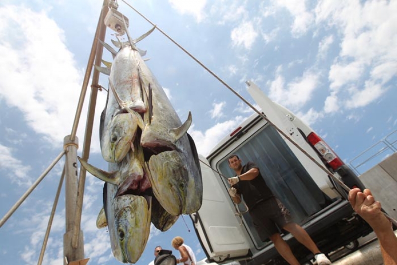 Le Let's go vient de s'amarrer Ă l'un des quais de la nouvelle darse de pĂȘche du port ouest au Port. Il revient de trois jours de pĂȘche en pleine mer. Ces cales dĂ©bordent de poissons. Surtout de daurades. Ă chaque rotation, le Let's go revient habituellement avec 10 unitĂ©s de ce poisson. Depuis trois semaines ce chiffre est multipliĂ© par 4, voire 5. Pascal Briand, patron pĂȘcheur, et Yannick Coeuret, marin pĂȘcheur, ne perdent pas de temps. Ils dĂ©chargent les cales et pĂšsent les pĂ©lagiques. Sur le quai FrĂ©dĂ©ric Gorlot, grossiste et porte parole de l'association interprofessionnelle de la pĂȘche et de l'aquaculture, attend Ă proximitĂ© de son camion frigorifique. "Les poissons sont pesĂ©s, embarquĂ©s dans le camion et immĂ©diatement livrĂ©s aux clients" note-t-il.Pas plus que les marins pĂȘcheurs, il ne peut expliquer l'afflux massif de daurades dans la zone. "Rien n'a changĂ© dans les techniques de pĂȘche, ni dans les zones de prĂ©lĂšvements et pourtant les daurades sont lĂ en masse" dit-il. Le phĂ©nomĂšne a Ă©tĂ© constatĂ© par tous les pĂȘcheurs, qu'ils soient cĂŽtiers ou en haute mer.