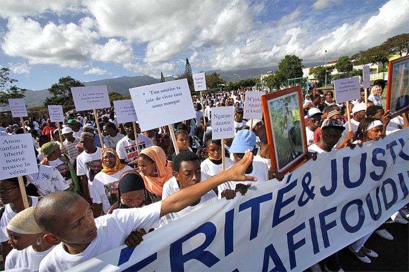 Environ 300 personnes ont participé au Port ce jeudi matin 20 mai 2010 à la marche blanche organisée en hommage à Aafifoudine Aboudou. La manifestation était organisée par la famille et par l'association "Vérité et justice pour Aafifoudine". Le cortège a défilé du domicile de la famille Aboudou jusqu'au lycée Léon de Lepervenche où était scolarisé le jeune homme. Le jeune lycéen a trouvé la mort le 30 avril dernier sur le chemine des Anglais (la Possession) lors d'une course de montagne comptant pour le bac. Le cortège est entré dans la cour du lycée. De nombreux élèves se sont alors joints à l'hommage. Les obsèques d'Aafifoudine auront lieu prochainement. Il n'y aura en effet pas de contre autopsie a en effet annoncé Ali Aboudou, le père du jeune homme.