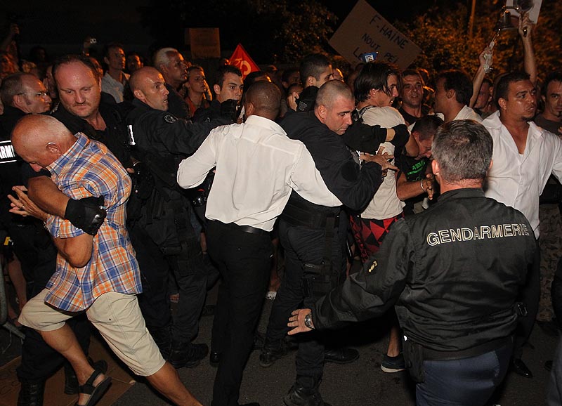 Depuis son arrivée à La Réunion ce mardi matin, la présidente du Front national a été chahutée à chacune de ses apparitions en public. Son arrivée dans le hall de l'aéroport Roland Garros vers 11 heures 30 a donné lieu à une bousculade générale entre l'impressionnant dispositif de sécurité déployé par la police et une centaine de manifestants anti FN. Sous les huées et les quolibets - "rasis déor", "nou vé pa dou" -, la présidente frontiste a traversé l'aérogare au pas de course et s'est engouffrée dans une voiture qui l'a conduite vers l'hôtel Lux (anciennement "les Villas du Lagon") à l'Ermitage où elle loge. Des heurts sans gravité ont opposé les policiers à des groupes de manifestants.En début d'après-midi, à l'appel de la section communiste de Saint-Louis, près de 200 personnes se sont rassemblées devant le temple tamoul de l'étang de Gol qui avait accepté de recevoir Marine Le Pen. Les manifestants étaient conduits par Claude Hoarau, maire PCR de Saint-Louis. La présidente du Front national a une nouvelle fois été copieusement huée ([url=http:///reportage.php?id_reportage=14361&id_rubrique=01] Voir article "Non au Front national" [url]). Un bref râlé poussé a même opposé un groupe de manifestants à un dirigeant frontiste local venu demander à Claude Hoarau s'il avait "incité les employés communaux à venir manifester". Une fois encore un important dispositif de sécurité avait été déployé par les gendarmes.