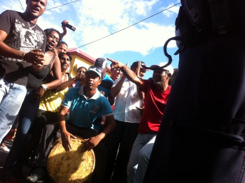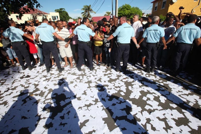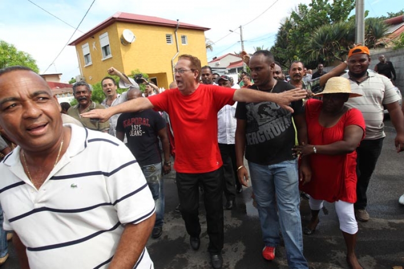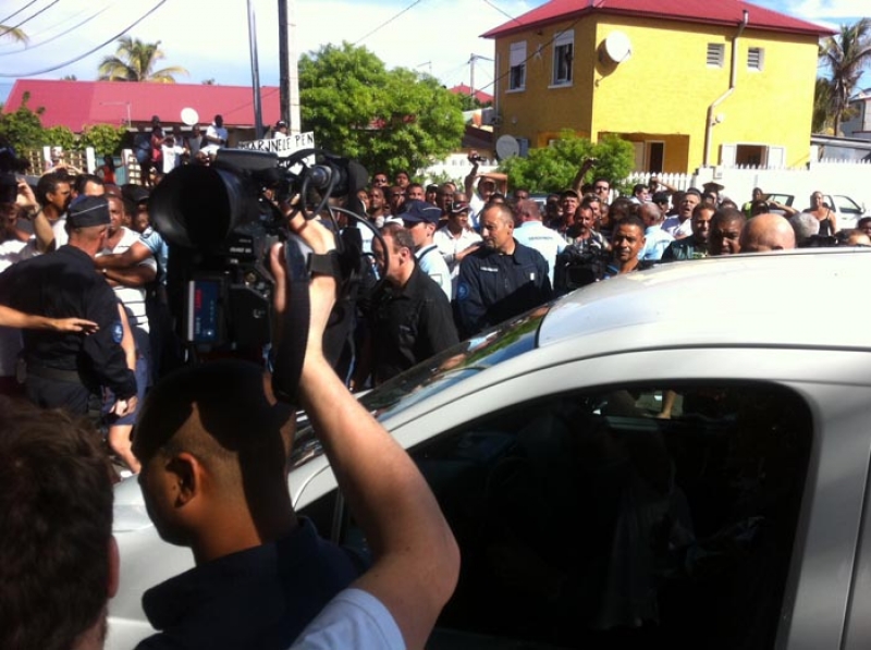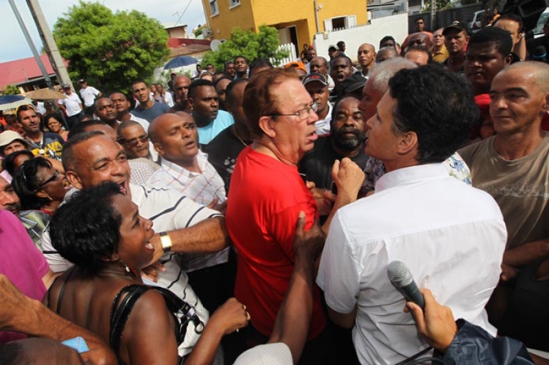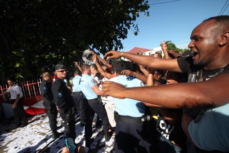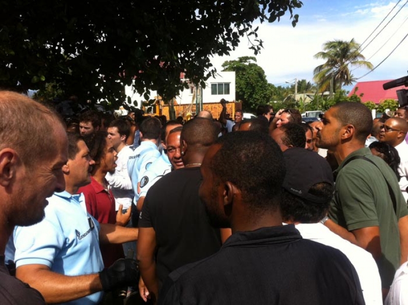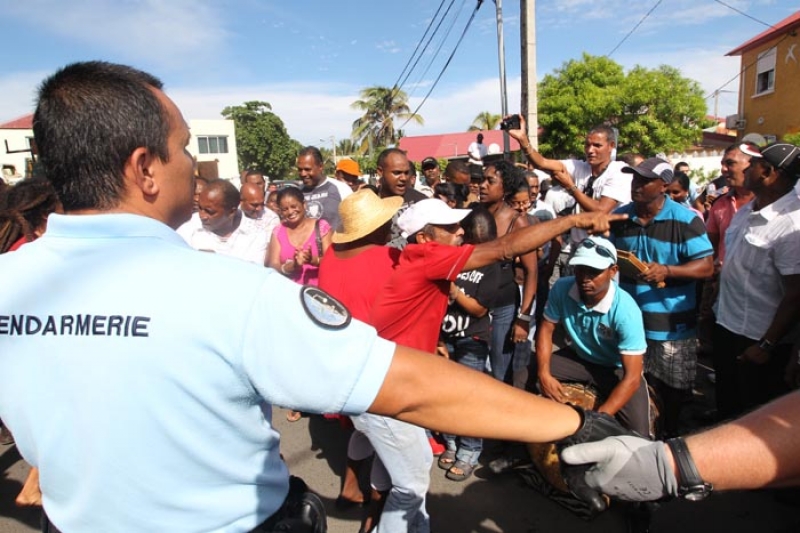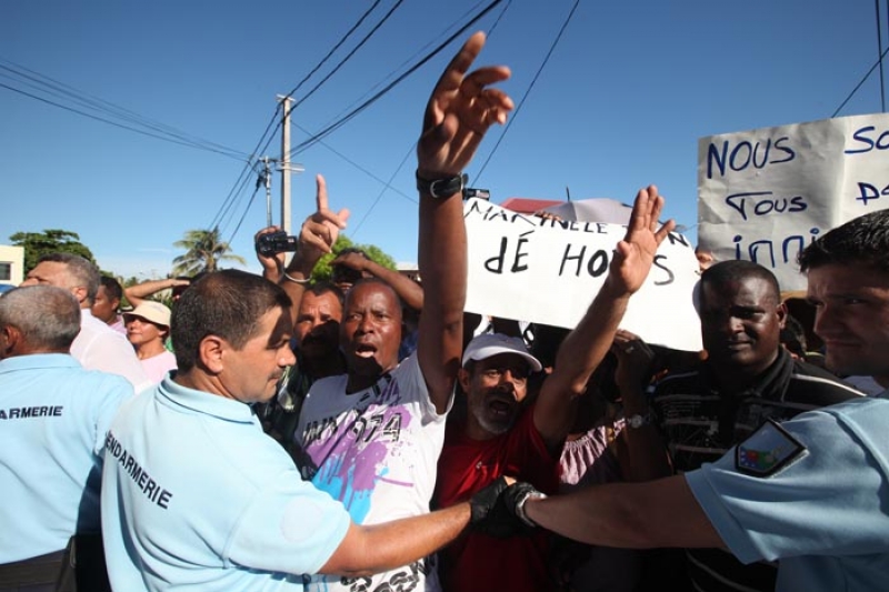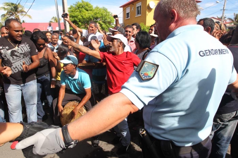 Pour rappel la situation est tendue depuis ce mardi après-midi. Vers 15 heures 50 ce mardi 7 février 2012, un râlé-poussé a opposé les manifestants anti Front National, mené par Claude Hoarau, maire de Saint-Louis, et des gendarmes mobiles à l'Étang du Gol à Saint-Louis. Le râlé-poussé s'est produit lorsque Joseph Damour, délégué à la sécurité du Front national local est venu pour discuter avec Claude Hoarau, maire PCR de Saint-Louis. Il a alors lancé : "Alors monsieur le maire, vous avez fait venir tous vos employés communaux pour manifester ?". Une provocation que n'ont pas supporté les manifestants anti Front national. Ces derniers ont alors été bousculé par le cordon des gendarmes mobiles.
