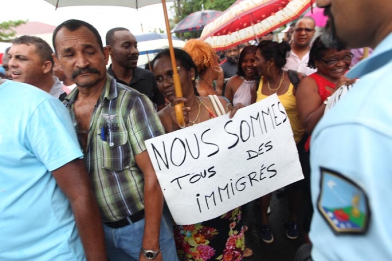 Interrogée par Imaz Press Réunion sur la question de savoir comment elle allait concilier son programme demandant le départ des immigrés alors que le peuple de La Réunion est essentiellement issu de peuple d'immigrés, Marine Le Pen a répondu: "Il faut arrêter avec l'immigration. On ne peut pas favoriser tout le temps les étrangers en matière de logement, de travail et du social. La priorité doit être donnée aux Français, et cela, d'autant pus que le taux de chômage atteint les 25%".