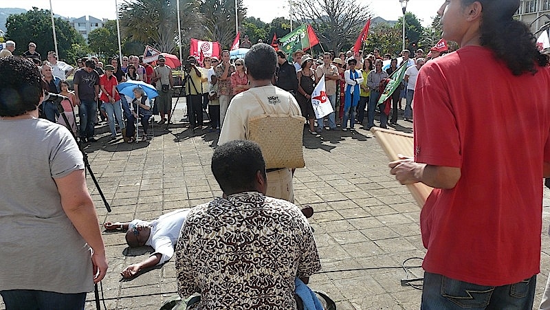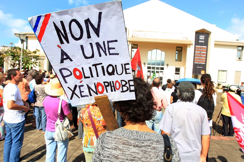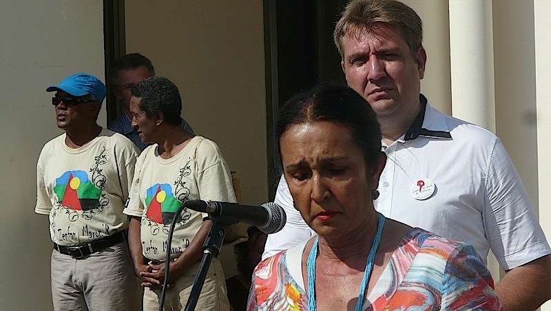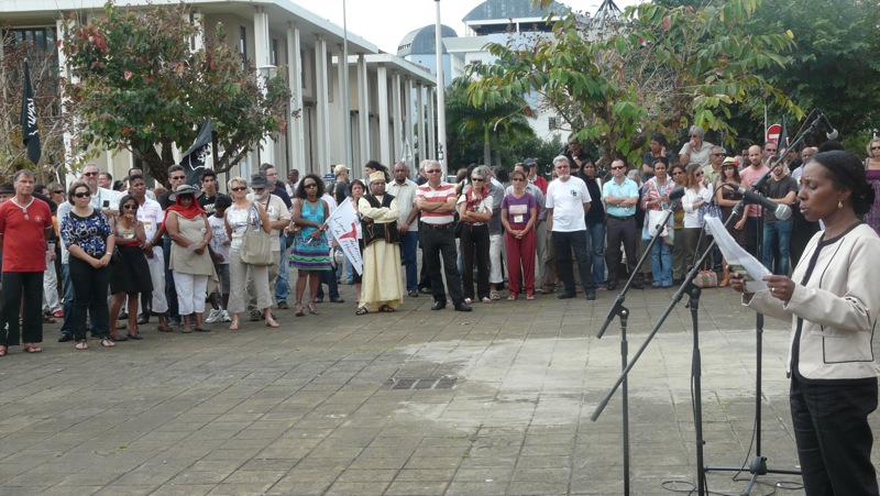 "Les principes de la démocratie sont en danger, nous assistons à une avalanche de discours provocateurs utilisant des termes qui ne l'avaient plus été depuis les heures sombres de 1940 (allusion à la déportation des Juifs, des Tziganes et des communistes pendant la seconde guerre mondiale - ndlr) déplorait Christophe Pomez, président de la ligue locale des droites de l'homme, en début de manifestation. "Pour détourner l'attention de la population de crise, des problèmes liées à la retraite, à la baisse du pouvoir d'achat, le gouvernement stigmatise les gens du voyage, les émigrés, les Musulmans" ajoutait-il. "Les propos irresponsables du chef de l'État ne correspondent pas au vivre ensemble que le peuple réunionnais à su construire" estimait ensuite Axel Naillet, Vice-président de la LDH."Nous sommes bel et bien entrés dans une phase de dégradation rapide de la démocratie" remarquait pour sa part Huguette Bello. "Il est encourageant que des dizaines d'associations se soient mobilisées pour entrer en résistance contre les abus extrêmes perpétrés à l'encontre de la démocratie par Nicolas Sarkozy" se félicitait-elle en substance. Enumérant "les atteintes aux libertés des citoyens, à l'indépendance de la Justice, à la présomption d'innocence à la liberté de la presse", elle lançait "nous sommes en train de renouer avec le régime de Vichy (allusion au gouvernement du Maréchal Pétain qui pendant la seconde guerre mondiale a collaborer avec le régime nazi). Notant que de nombreuses voies en France et à l'étranger, "le Pape, les Nations unies par exemple" ont condamné "la stigmatisation des Roms dans le pays des lumières et des droits de l'Homme", elle s'indignait : "La République est avilie, elle est outragée". Elle appelait à résister contre "la politique du pilori et du bannissement qui touche à l'ignominie".