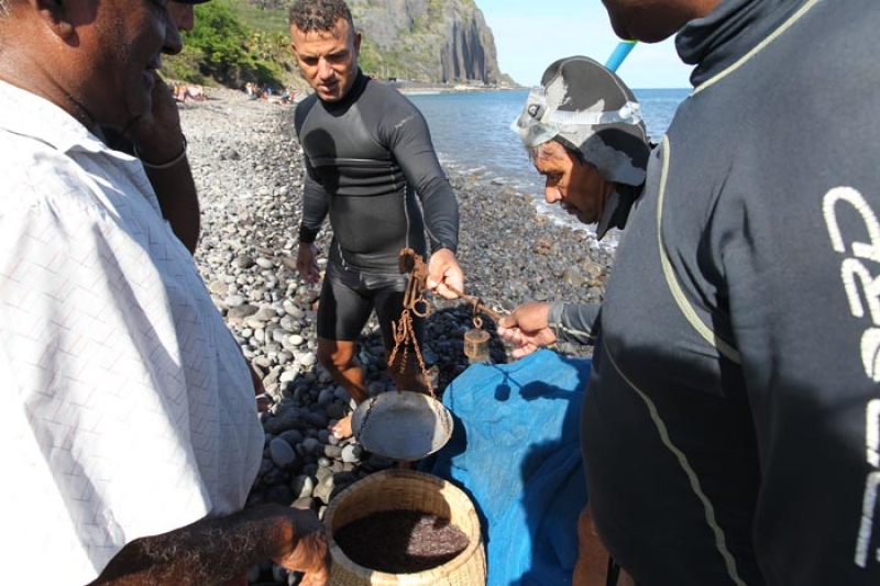 Les petits poissons changent très vite de "propriétaires". Les transactions se passent immédiatement après l'arrivée sur le rivage des bouées. Les bazardiers achètent les alevins 35 euros le kilos. Ils les revendront 10 à 15 euros plus cher un peu partout dans l'île.