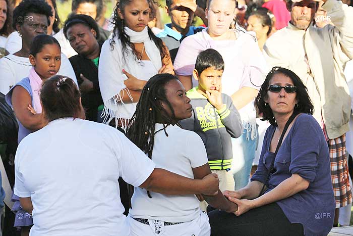 Ce dimanche 23 juin 2013, à partir de 16 heures, plus de deux cents personnes se sont rassemblées sur la place des Droits de l'Homme, à Champ Fleuri (Saint-Denis), pour rendre hommage au petit Mathéo, sauvagement tué dans le nuit de mardi à mercredi dernier à Saint-Benoît. Le beau-père, auteur présumé des faits, est en détention. En présence de la mère du petit garçon, très affectée, et de plusieurs de membres de sa famille, une minute de silence a été respectée et un lâcher de ballons a été effectué. Plusieurs personnalités étaient également présentes, dont Nassimah Dindar, présidente du conseil général, Gino Poninballom, conseiller général de Saint-Denis, ou encore Thérèse Baillif, présidente du Cevif (Collectif pour l'élimination des violences intrafamiliales). (Photo - Très affectée, la mère de Mathéo a assisté au rassemblement).