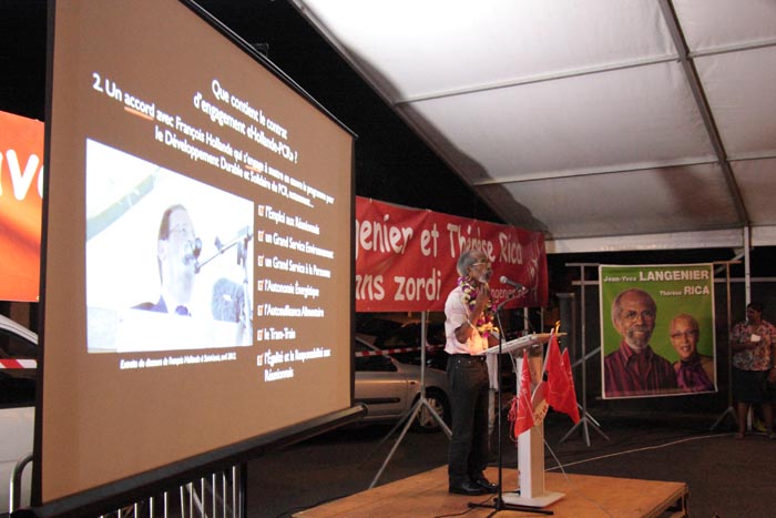 Plus de 500 personnes ont participé à un rassemblement organisé en ville de Saint-Paul, à l'étang, dans le cadre de la campagne de Jean-Yves Langenier, candidat dans la 2ème circonscription sous la bannière du parti communiste réunionnais. Des personnalités du PCR étaient présentes à ce meeting parmi lesquels Paul Vergès, Fabrice Hoarau, Roland Robert, et Claude Hoarau qui a pris la parole.