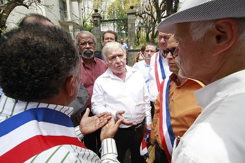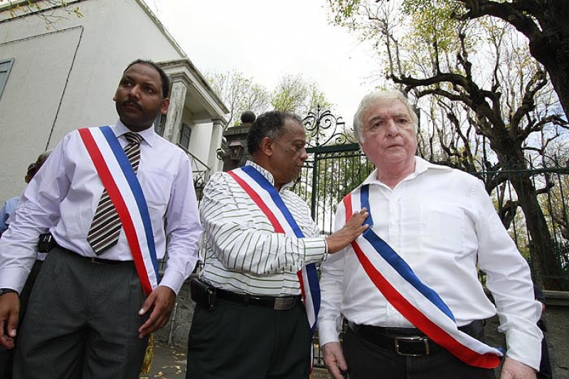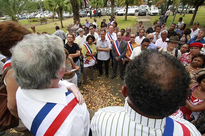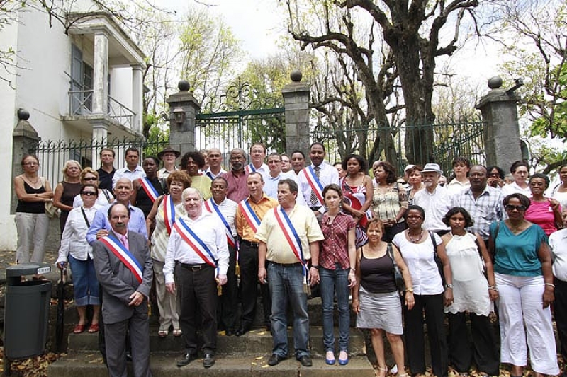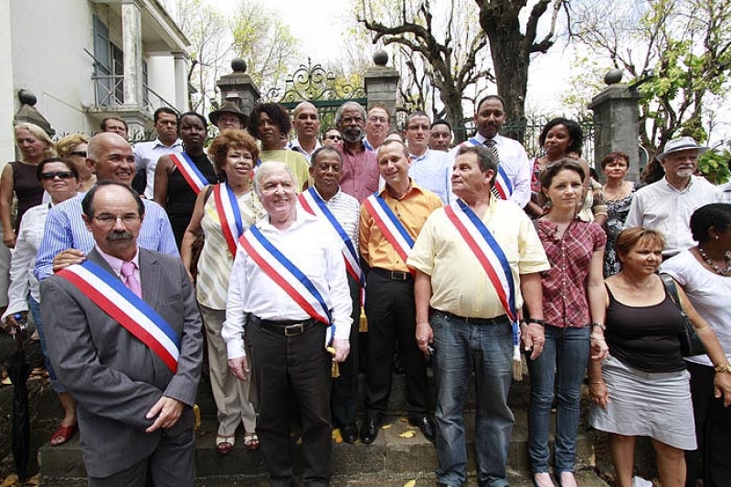 Plusieurs maires, conseillers municipaux, régionaux et généraux PCR, PS et Modem, se sont rassemblés devant la préfecture ce mardi matin 30 novembre 2010. Écharpes tricolores en bandoulières, ils protestaient symboliquement contre le fait que le programme de Marie Luce Penchard, ministre de l'outremer ne prévoit pas de rencontre entre elle et les élus. "La ministre est venue lancer la TNT, c'est bien. Mais les jeunes n'ont pas besoin de 10 chaînes de télévision gratuite, ils ont besoin de 10 000 contrats, ils veulent travailler. Nous aurions aimé en discuter avec Madame Penchard" a souligné Roland Robert, maire PCR de la Possession et président de l'association des maires de La Réunion. "La situation est très grave à La Réunion, nous sommes au bord de l'explosion. C'est un SOS que nous lançons au gouvernement" a commenté Gilbert Annette, maire socialiste de Saint-Denis