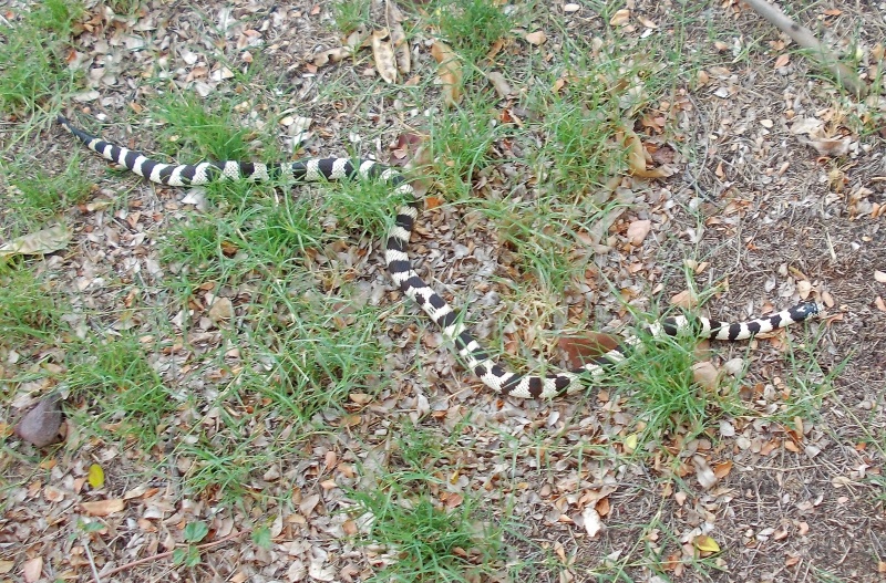 Rencontre insolite pour un usager de la route ce samedi 14 décembre 2013 en fin d'après-midi. Alors qu'il circulait près de la forêt de l'Étang-Salé, ce dernier a découvert un serpent au milieu de la chaussée. Le reptile a été confondu dans un premier temps avec un tricot rayé, serpent marin très venimeux. Il a finalement été identifié ce lundi 16 décembre par Roger Bour, herpétologue du Muséum de Paris, et Guillaume Holzapfel, vétérinaire dans l'Ouest, aidé par l'animalerie Mikiland de Saint-Paul. Il s'agit d'une inoffensive couleuvre américaine, appartenant à l'espèce lampropeltis getula californiae. Une couleuvre qui, selon le vétérinaire, "n'a rien à faire à La Réunion" et ne "présente aucun danger pour la population locale".