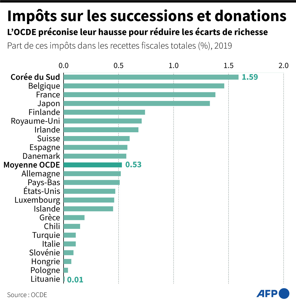 "Aujourd'hui, il n’y a pas de chiffre officiel et il n'y a pas beaucoup d'informations disponibles mais il est estimé qu’environ 80% des héritages ne sont pas taxés parce que les montants sont trop faibles et sont en dessous de l’abattement", résume pour l'AFP Nicolas Fize, expert rattaché au CAE.