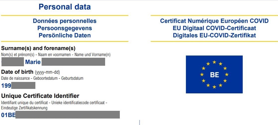 La structure de ce numéro d'identification est la même pour tous les certificats Covid européens, peu importe le pays. Comme l'indiquent les directives, le "01", qui apparaît en premier, désigne la version du certificat utilisée. Il est suivi par le préfixe du pays: "HU" pour la Hongrie par exemple, ou "BE" pour la Belgique.