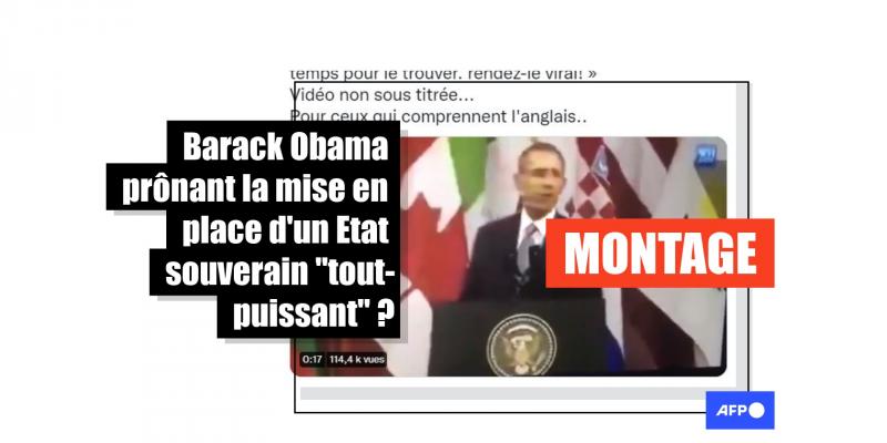 Dans l'extrait vidéo de 21 secondes, qui n'est pas sous-titré, on peut entendre Barack Obama affirmer en anglais : "Et pour l'ordre international que nous avons mis des générations à construire, les hommes et les femmes ordinaires sont trop étroits d'esprit pour gérer leurs propres affaires, l'ordre et le progrès ne peuvent venir que lorsque les individus abandonnent leurs droits à un souverain tout-puissant". Une déclaration relayée sous la forme d'un visuel par un internaute dans les commentaires au tweet d'André Bercoff :