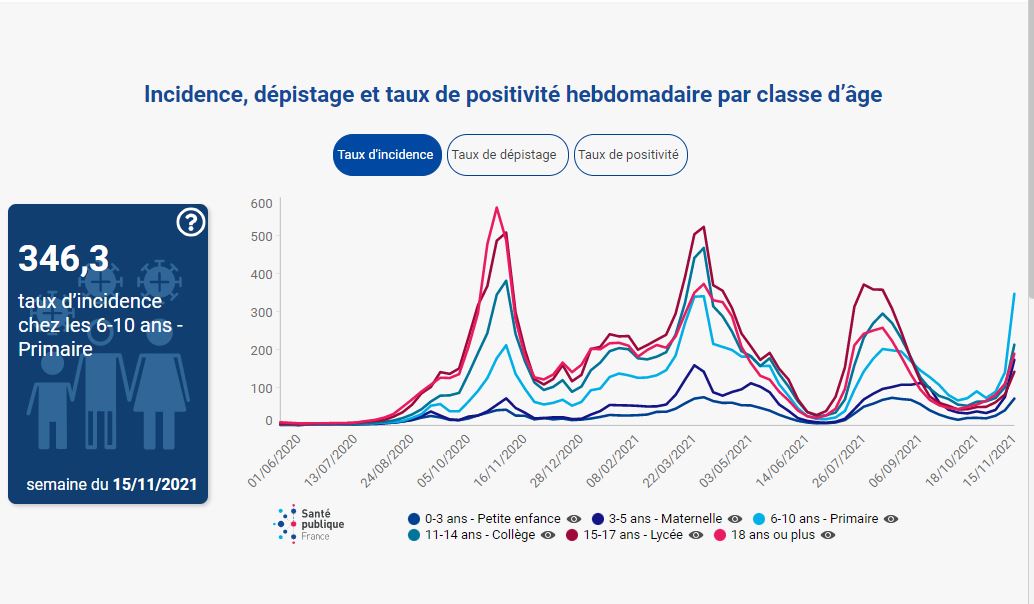 Ces dernières semaines en France, le taux d'incidence chez les enfants a enregistré des records depuis le début de l'épidémie, selon les chiffres de Santé Publique France