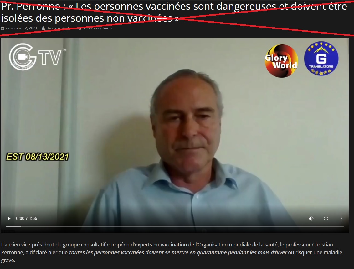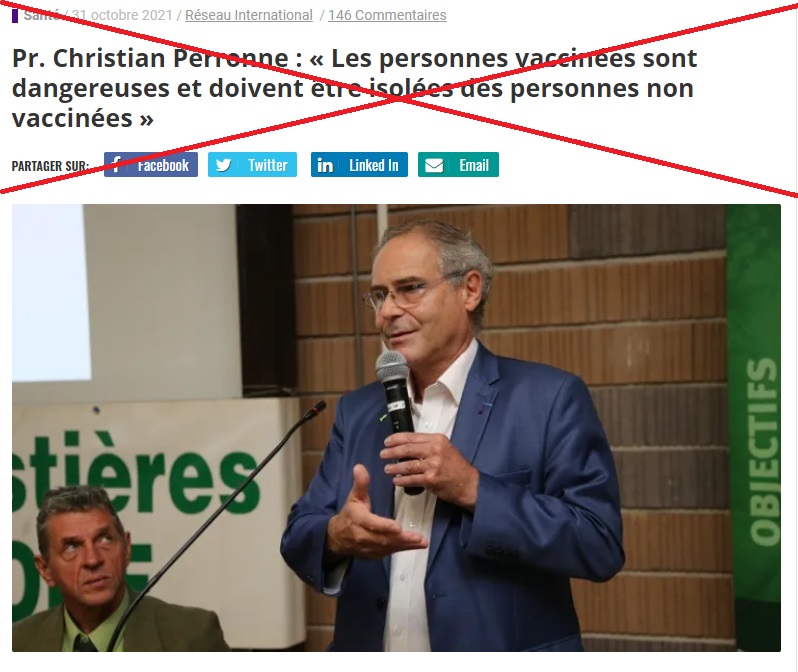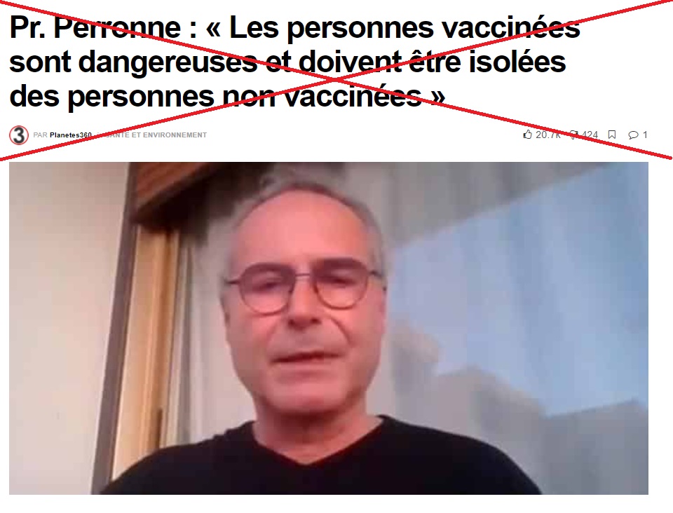 "Les personnes non vaccinées ne sont pas dangereuses. Les personnes vaccinées sont dangereuses pour les autres. C'est prouvé en Israël maintenant, avance Christian Perronne cité dans les publications.