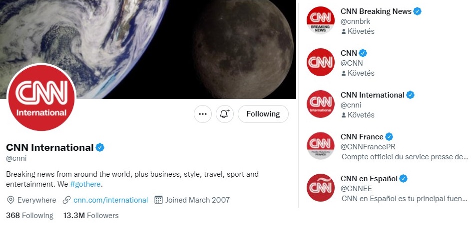 A l'inverse, les comptes Twitter officiels de CNN comportent un badge bleu, qui indique aux internautes l'authenticité d'un compte d'intérêt public. "Pour obtenir le badge bleu, votre compte doit être authentique, notoire et actif", précise Twitter. Ils ont également chacun des millions d'abonnés.