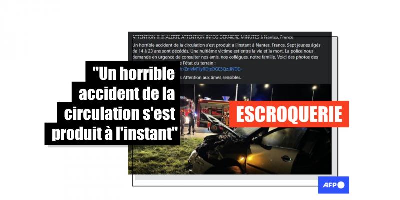 Photos à l'appui, des dizaines de publications partagées sur Facebook prétendent faire état d'accidents de la route récents, et renvoient les internautes vers des sites qui leur permettraient d'identifier les victimes "pour vérifier qu'il ne s'agit pas d'un proche". Ce sont des tentatives d'hameçonnage visant à extorquer les données personnelles des internautes, et les images utilisées montrent toutes des accidents anciens.