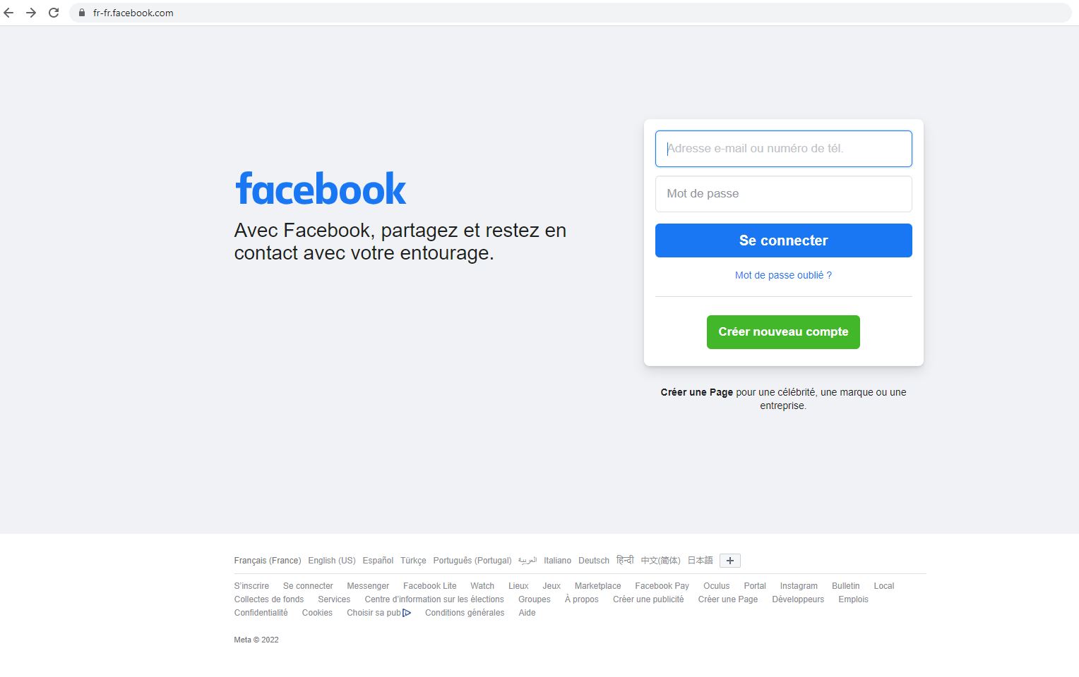 Cependant, les pages ne sont que des copies, qu'il est possible de repérer à l'aide de quelques indices. Premièrement, les adresses URL des pages, que l'on retrouve dans la barre de navigateur, ne correspondent pas à celle de Facebook, qui comporte les mots "facebook.com".