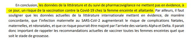 Le dernier rapport de ces centres concernant la période du 12 décembre 2020 au 7 octobre 2021, conclut que "les données de la littérature et du suivi de pharmacovigilance ne mettent pas en évidence, à ce jour, un risque de la vaccination contre la Covidâ€19 chez la femme enceinte et allaitante".