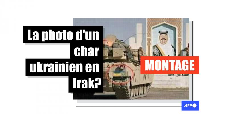 Une publication Facebook prétend qu'une image d'archive montrant un char ukrainien en Irak circule sur les réseaux sociaux dans le but de rappeler "l'implication de Kiev" dans les "invasions de l'Irak par les occidentaux". En réalité, le drapeau et les armoiries de l'Ukraine ont été ajoutés à la photographie originelle, prise au Koweït, qui a fait l'objet d'un montage. Par ailleurs, bien que des troupes ukrainiennes aient servi en Irak entre 2003 et 2008, la photo relayée ressemble en tout point à des images de soldats américains situés à la frontière entre l'Irak et le Koweït en 1991, pendant la guerre du Golfe.