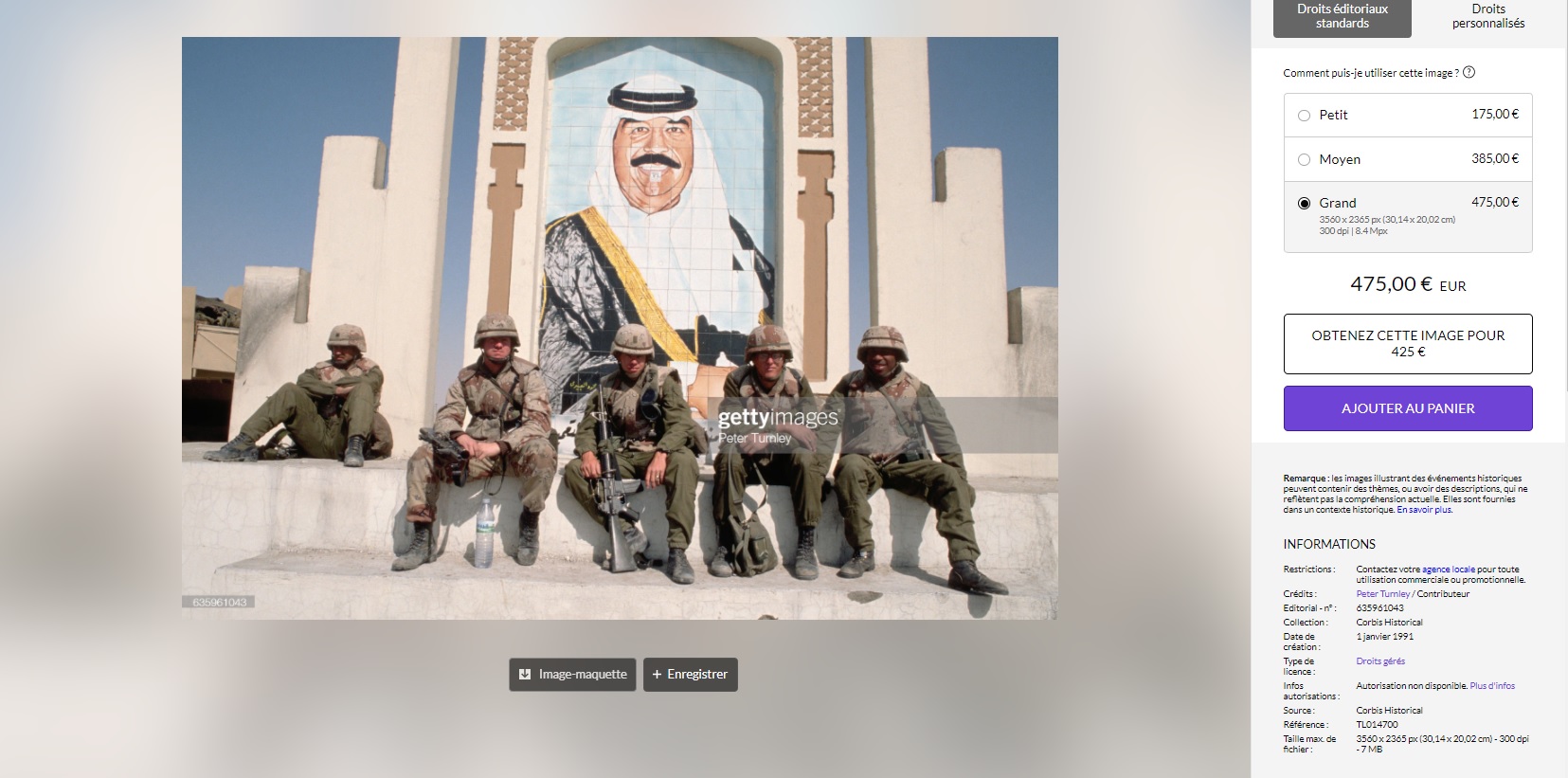 La légende de la photographie précise également que ces hommes sont des soldats américains, postés à la frontière entre le Koweït et l'Irak.