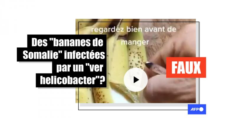 Qu'en est-il réellement ?La Somalie n'exporte quasiment plus de bananes à l'international selon l'ONU et l'helicobacter n'est pas un ver ou un parasite mais une "bactérie" qui est invisible à l'oeil nu, contrairement à ce que la vidéo laisse croire, soulignent les spécialistes interrogés par l'AFP.