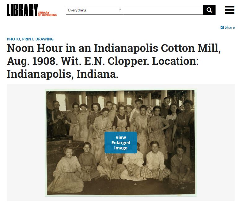 Quant à la photo qui accompagne ces publications virales, une recherche d'image inversée sur Google permet de la retrouver sur le site de la banque d'images Alamy. Il s'agit d'un cliché d'ouvrières pris durant leur pause déjeuner dans une usine textile de l'Indiana, en août 1908 et conservée par la Bibliothèque du Congrès américain.
