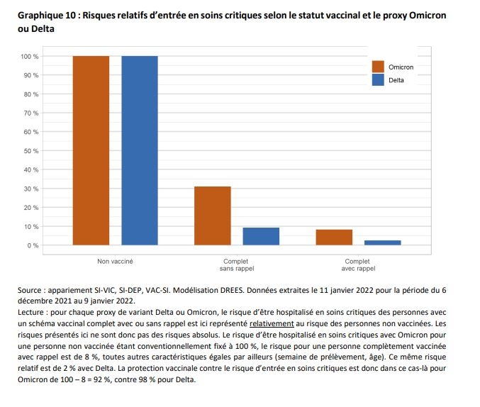 C'est aussi la conclusion que tire la cellule de statistiques du ministère de la Santé (Drees) dans une note publiée le 14 janvier, soulignant que "la protection vaccinale demeure élevée contre les formes graves d'infection au variant Omicron, même si elle est inférieure à celle contre le variant Delta".