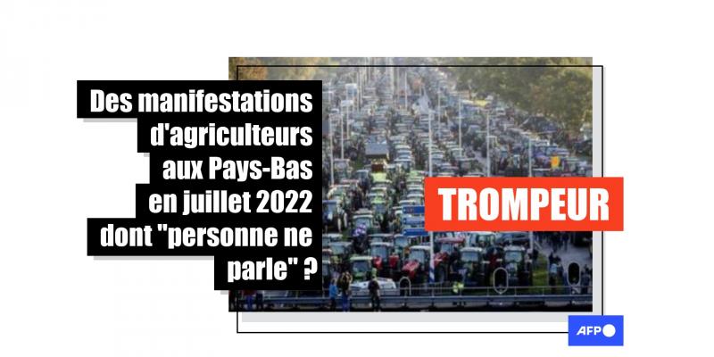 Ce n'est pas la première fois que des images de protestations et de blocages de routes aux Pays-Bas circulent sur les réseaux sociaux assorties de légendes trompeuses, et donnent lieu à des vérifications de l'AFP, comme ici en février 2022.