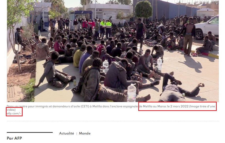 Certaines sont tirées d'une vidéo enregistrée par l'AFP à Melilla. L'hebdomadaire français L'Express a utilisé une de ces images tirées de la vidéo pour un article publié le 3 mars 2022 sur "une nouvelle entrée massive de migrants dans l'enclave de Melilla". On retrouve ces photos dans plusieurs autres médias, avec le crédit AFP (1, 2, 3).