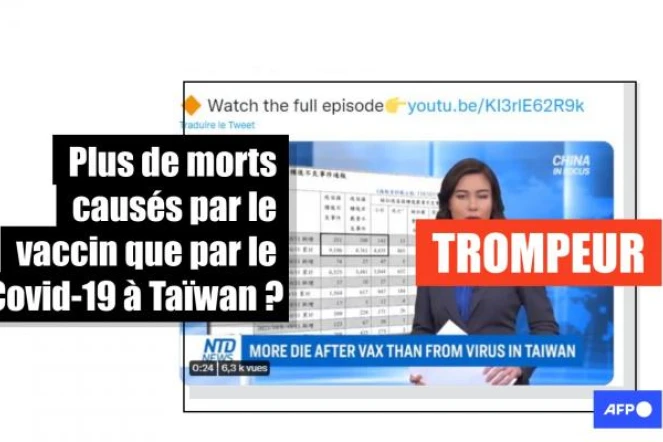 "Les autorités sanitaires taïwanaises affirment que, depuis lundi, le nombre de morts après vaccination a atteint 865 tandis que le nombre de morts du virus est 845", dit effectivement la journaliste de NTD News dans cet extrait du 13 octobre - encore disponible sur le compte twitter officiel de la chaîne - qui sert de source aux différentes publications.