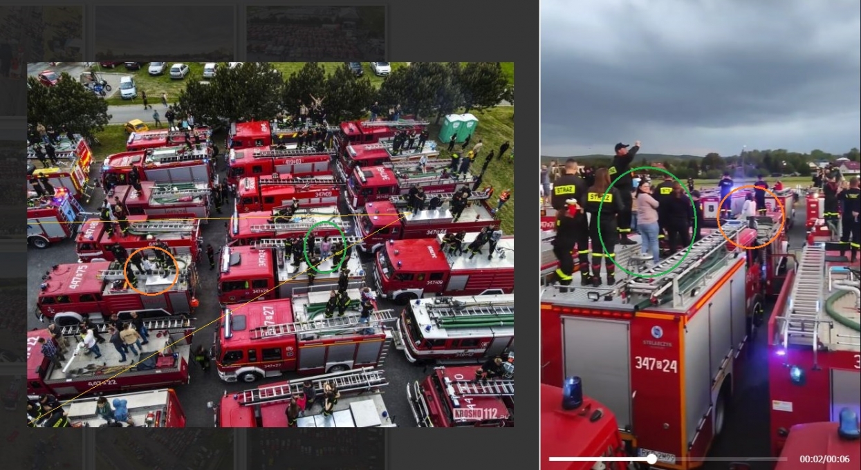 Dans la vidéo, on peut voir que les pompiers ont le mot "straz" inscrit dans leur dos, une abréviation du mot "strażak", "pompier" en polonais.