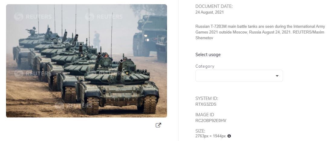 La légende de cette photo indique qu'elle montre des chars T-72B3M russes lors des Jeux internationaux de l'armée 2021, un événement organisé par le ministère de la Défense russe, non loin de Moscou.