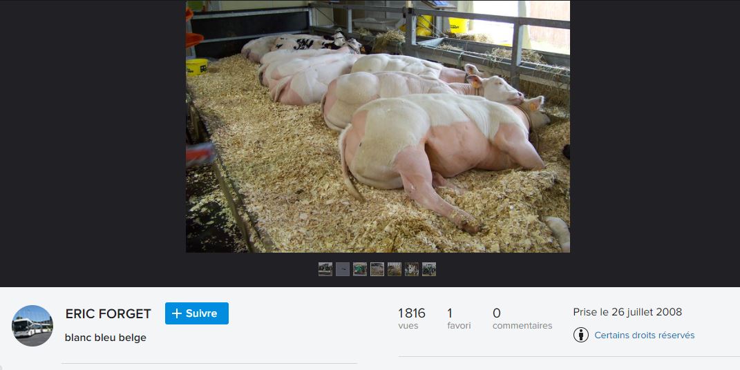 Le nom du photographe, Eric Forget, est également mentionné. On retrouve effectivement la photo sur son compte Flickr, un site dédié à la photographie, où il est précisé qu'elle a été prise le 26 juillet 2008 à la foire agricole de Libramont, dans le sud-est de la Belgique.